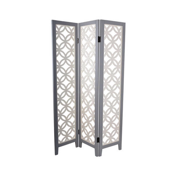 Parawan składający się z trzech skrzydeł, z pięknym, ażurowym wzorem. Stelaż przygotowany został z drewna i osadzony na sylikonowych nóżkach. Ma ogromne walory dekoracyjne, nadając wnętrzu klimatu i uroku. Może służyć jako oddzielenie stref w domu, jak również jako element użytkowy w salonach fryzjerskich i kosmetycznych.