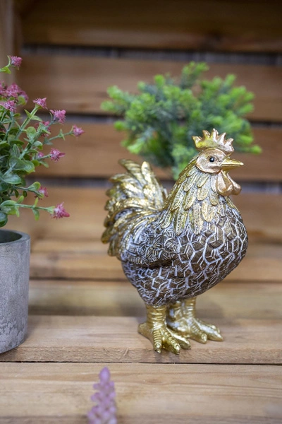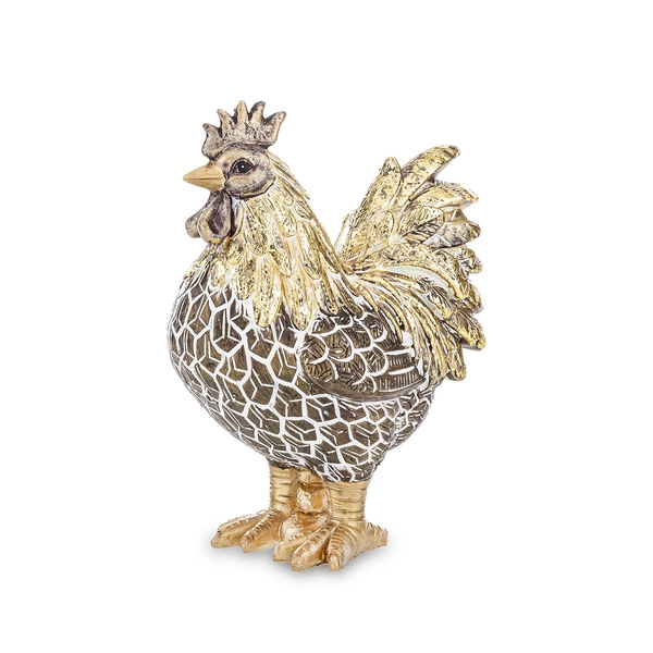 Dekoracja przygotowana w formie pięknej figurki. Pozwoli na aranżację wnętrza w okresie świąt Wielkanocy. Bardzo starannie wykonana, przedstawia koguta, utrzymanego w kolorystyce złota i brązów. Nadaje wyjątkowego klimatu każdej przestrzeni domowej.