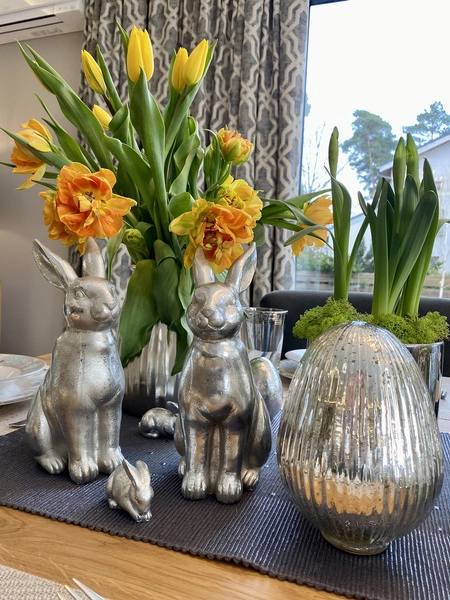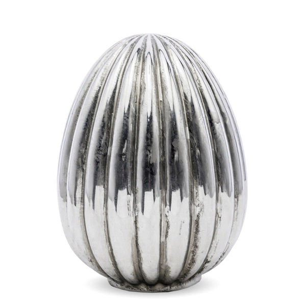 Figurka przedstawiająca jajko. Przygotowano je w srebrnym, atrakcyjnym kolorze, a jego powierzchnię plisowano. Stanowi wspaniałą dekorację, zwłaszcza w okresie Wielkanocy.