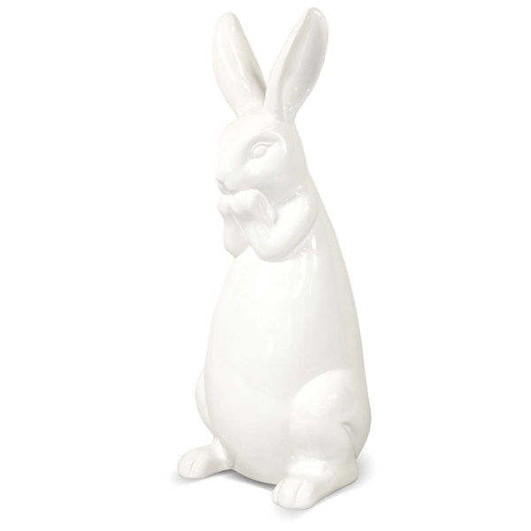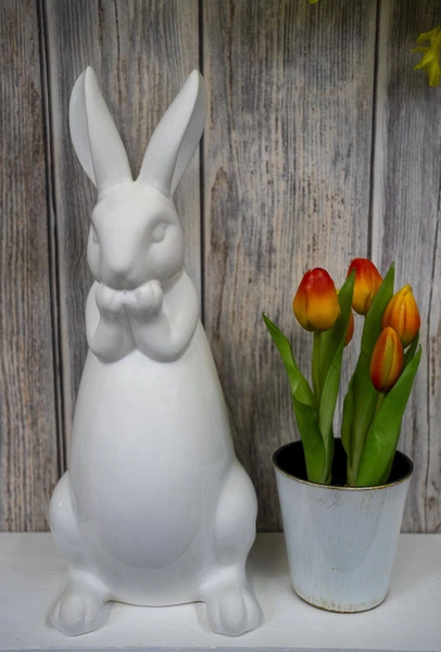 Dekoracja przygotowana w formie pięknej figurki. Pozwoli na aranżację wnętrza w okresie świąt Wielkanocy. Bardzo starannie wykonana, przedstawia stojącego królika, przygotowanego z białej ceramiki. Nadaje wyjątkowego klimatu każdej przestrzeni domowej.