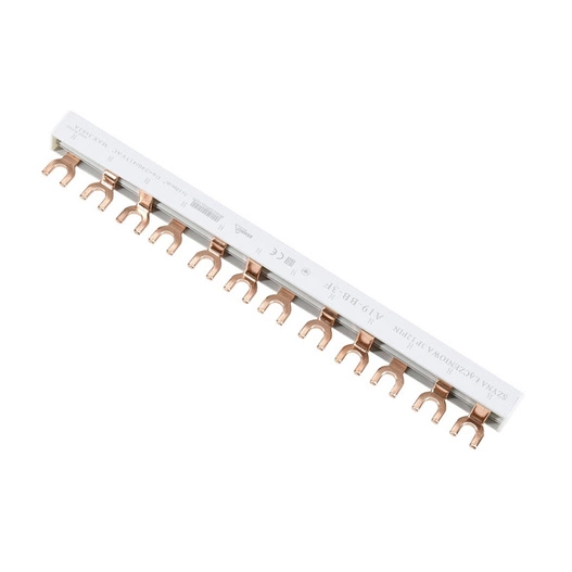 Szyna łączeniowa 3F TYP‑U 1,4/7 mm to precyzyjnie wykonany komponent do rozdzielnic trójfazowych, stworzony z myślą o bezpiecznym i efektywnym łączeniu jednoimiennych biegunów aparatury modułowej. Wykonana z miedzi zapewnia doskonałą przewodność i trwałość, a konstrukcja typu widełkowego (TYP‑U) ułatwia montaż i skracanie do wymaganej długości. Dzięki 12 modułom (12×17 mm) i maksymalnemu prądowi obciążenia 63 A (10 mm²), idealnie sprawdzi się w instalacjach domowych i przemysłowych, oferując niezawodność i wygodę użytkowania.