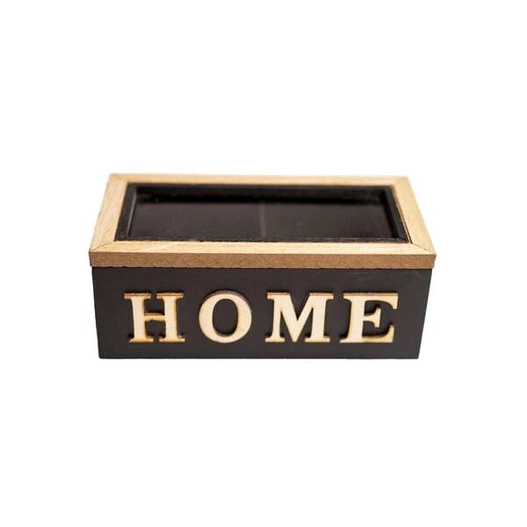 - Pudełko drewniane czarne "Home" z 2 przegrodami 16,5cm