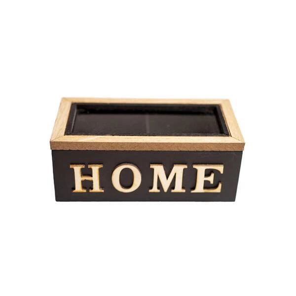 Pudełko drewniane czarne "Home" z 2 przegrodami 16,5cm