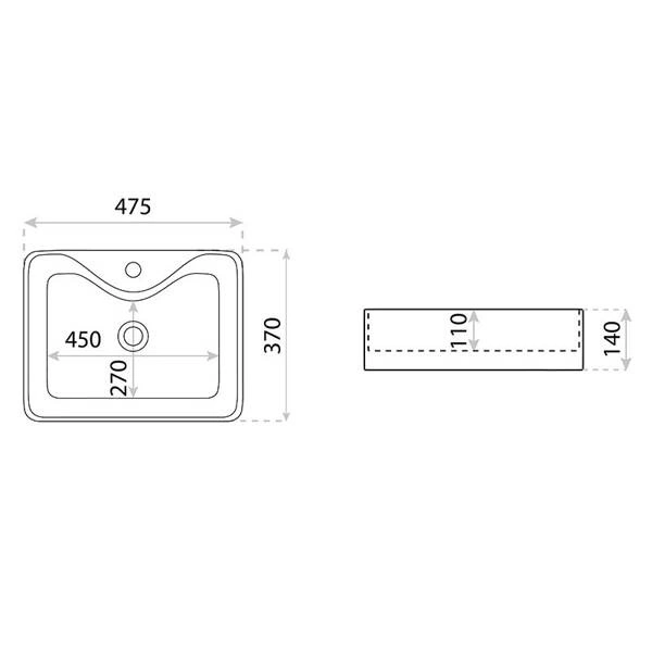 - Umywalka nablatowa prostokątna Castor 47,5x37cm