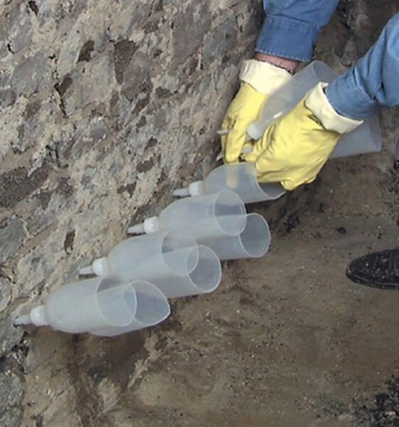 - Lejki powinny być w połowie pełne przez ok. dwa dni, aby płyn skutecznie penetrował mur.