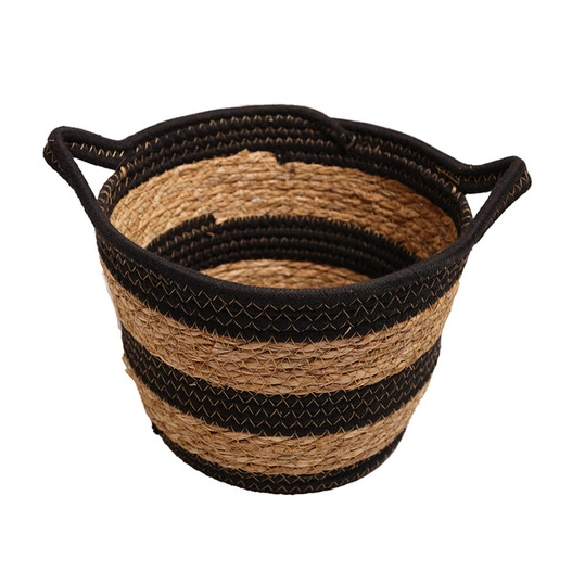 Piękny naturalny pleciony koszyczek z rączkami wykonany z liści hiacynta. Pomysł na wyjątkową osłonę do kwiatów albo sposób na przechowywanie domowych drobiazgów.