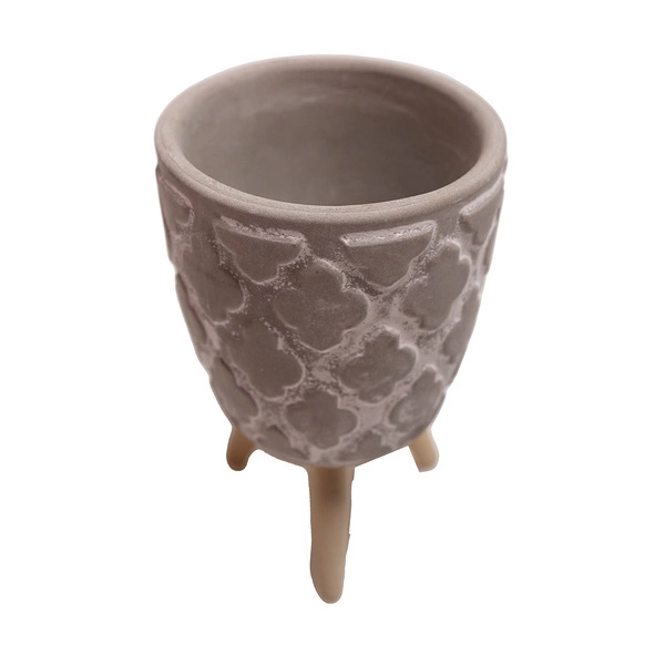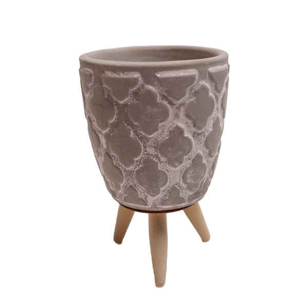 Osłonka w pięknie szarym kolorze, osadzona na nóżkach, z powierzchnią ozdobioną dekorem Maroko. Pozwoli wyeksponować uprawy w wyjątkowy sposób, tak aby stały się mocnym, charakterystycznym elementem dekoracyjnym wnętrza.