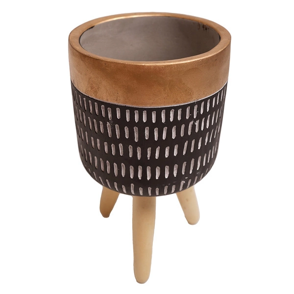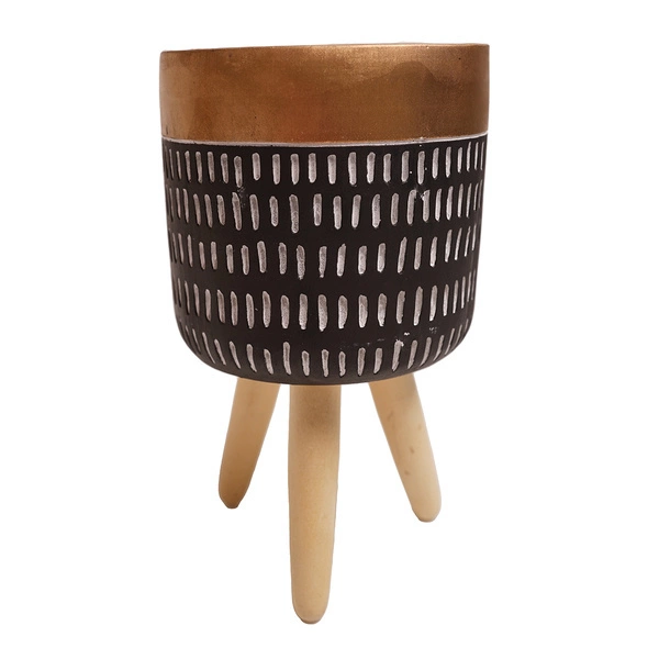 Osłonka w pięknie czarnym kolorze, ze złotymi rantami, osadzona na nóżkach i ozdobiona białymi cętkami. Pozwoli wyeksponować uprawy w wyjątkowy sposób, tak aby stały się mocnym, charakterystycznym elementem dekoracyjnym wnętrza.