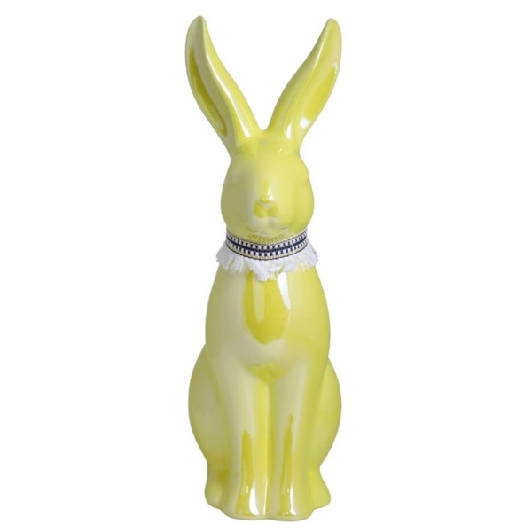 Żółty odcień symbolizuje radość, nadzieję i świeży początek, dlatego figurka idealnie wpisuje się w wiosenne aranżacje oraz dekoracje wielkanocne. Stylowy zając będzie też miłym akcentem w pokoju dziecka lub przytulnej sypialni, wprowadzając do wnętrza lekkość i pozytywną energię. To drobny detal, który potrafi zbudować nastrój i sprawić, że dom staje się jeszcze bardziej serdeczny.