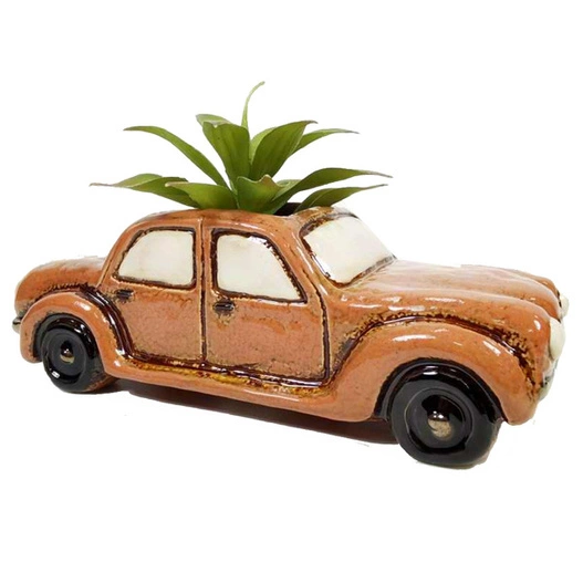 Piękna osłonka - samochód ceramiczny, przygotowany w atrakcyjnej kolorystyce brązu z beżowymi oknami.