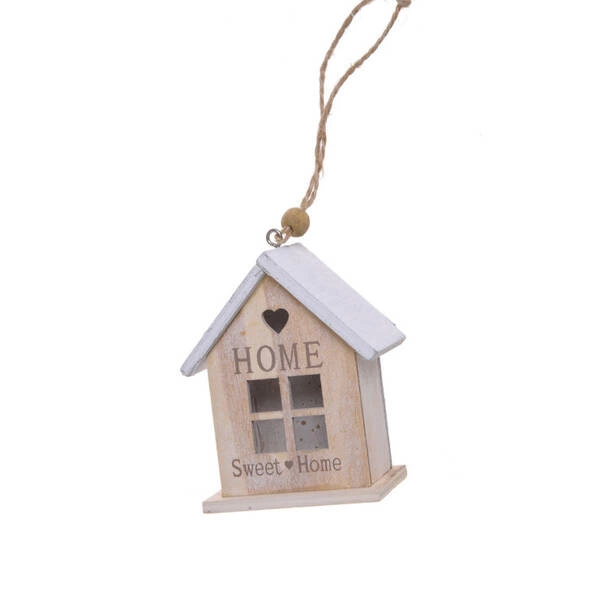 - Zawieszka domek drewniany z białym dachem Home 9cm