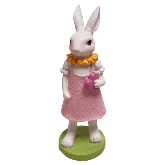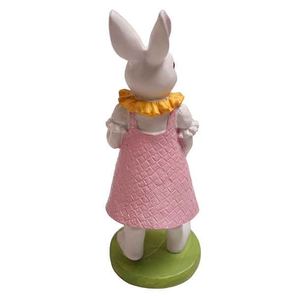 Figurka przedstawiająca samiczkę zająca. Odziana jest w różową sukienkę i osadzona na zielonej podstawie. Stanowi doskonałą dekorację wnętrza, zwłaszcza w okresie wiosny i świąt Wielkanocy.