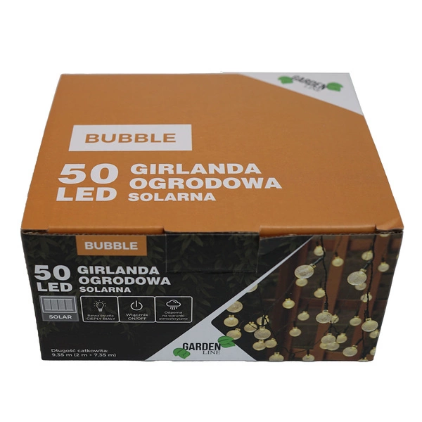 Atrakcyjna girlanda z diodami LED, która przeznaczona jest do użytku wewnątrz i na zewnątrz. Zastosowano w niej klasyczne żarówki, które mieszczą w sobie diody LED. Zapewnia ciepłe, białe światło, które tworzy przyjemną, miłą atmosferze w ogrodowej przestrzeni. Pozwala na ciekawą aranżację, która jeszcze mocniej zadba o relaks. Jest też świetną formą doświetlenia altany, tarasu, balkonu, stanowi przyjemne tło podczas grilla i innych spotkań w plenerze. Zasilana jest energią słoneczną.