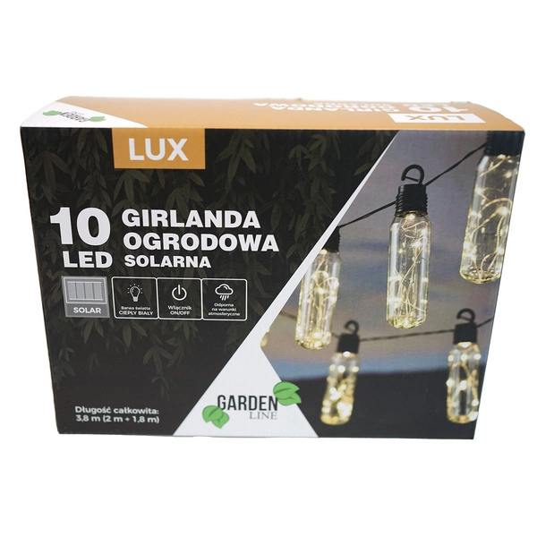 Girlanda solarna 10LED 1,8m podłużne żarówki