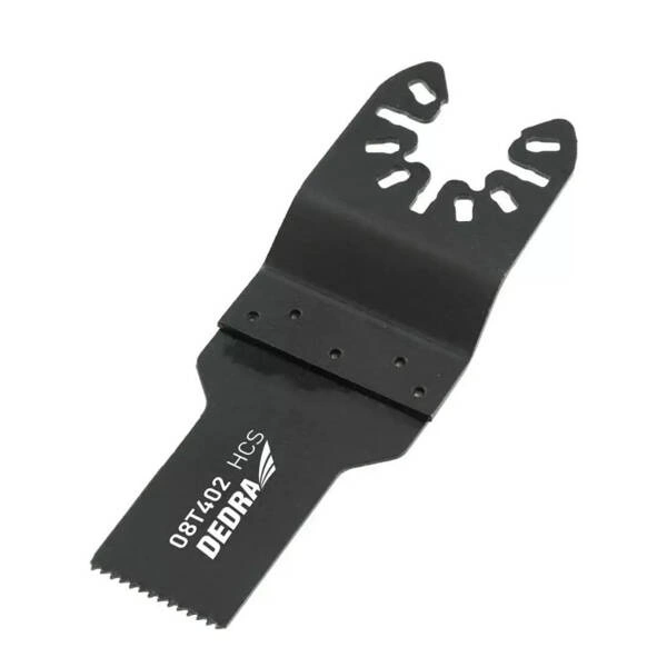 Brzeszczot do drewna HCS 20x40mm / 1,4mm do multinarzędzi Dedra sprawdzi się podczas prac remontowych, montażowych, wykończeniowych oraz przy precyzyjnym cięciu drewna, paneli, sklejki i innych materiałów drewnopochodnych. Idealny do wykonywania wpustów, cięć w narożnikach i miejscach trudno dostępnych.