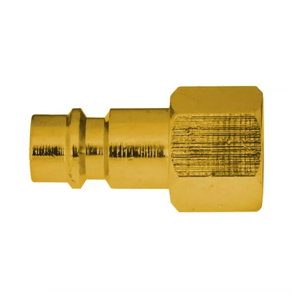 Szybkozłączka męska wykonana z mosiądzu. Posiada gwint wewnętrzny 1/4", rozmiar klucza płaskiego 16. Do instalacji pneumatycznych w warsztatach, w zakładach przemysłowych, na budowach.