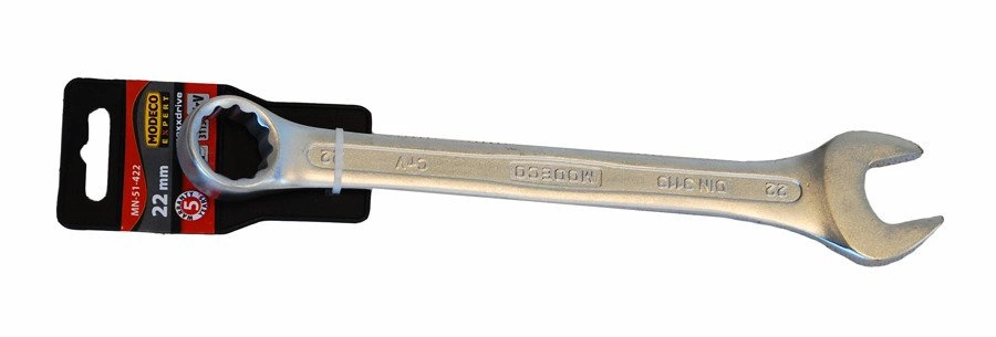 Klucz oczkowo-płaski 22mm MODECO doskonale sprawdzi się przy pracach montażowych, serwisowych oraz naprawczych w warsztatach, garażach i podczas remontów domowych. Idealny do śrub i nakrętek w instalacjach, maszynach oraz pojazdach mechanicznych.