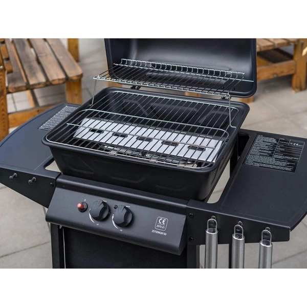 - 2 palniki z oddzielnym zapłonem – precyzyjna kontrola temperatury i wygodne grillowanie.
