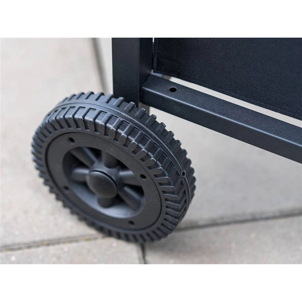 - Solidne koła – łatwy transport i mobilność grilla w ogrodzie lub na tarasie.