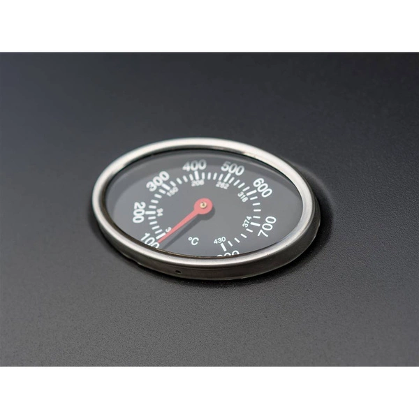 - Termometr w klapie – stała kontrola temperatury wewnątrz grilla.