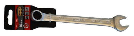 Klucz oczkowo-płaski 16mm MODECO to niezawodne narzędzie, które sprawdzi się zarówno w warsztacie profesjonalisty, jak i w domowej skrzynce narzędziowej. Dzięki precyzyjnemu wykonaniu oraz wysokiej jakości materiałom klucz zapewnia pewny chwyt i skuteczne odkręcanie lub dokręcanie śrub i nakrętek. Ergonomiczny kształt oraz optymalna długość robocza 195 mm gwarantują wygodę użytkowania nawet w trudno dostępnych miejscach. Narzędzie doskonale sprawdzi się podczas prac montażowych, serwisowych i naprawczych, zapewniając trwałość oraz bezpieczeństwo pracy.