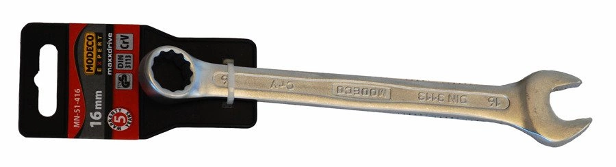 Klucz oczkowo-płaski 16mm MODECO jest przeznaczony do prac montażowych, naprawczych i serwisowych w motoryzacji, budownictwie, instalacjach hydraulicznych oraz podczas prac domowych. Idealny do dokręcania i odkręcania śrub i nakrętek w miejscach o ograniczonym dostępie.