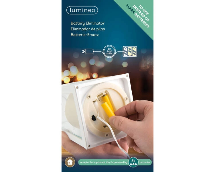 Eliminator baterii PCV do zastosowań wewnętrznych to praktyczne rozwiązanie, które pozwala zastąpić klasyczne baterie AAA trwałym i wygodnym zasilaniem sieciowym. Dzięki trzem adapterom imitującym baterie, eliminator sprawdzi się idealnie w lampkach, dekoracjach, figurkach oraz innych urządzeniach wymagających trzech paluszków AAA. Urządzenie wyposażono w przewód o długości 300 cm, co daje swobodę montażu i wygodę użytkowania. Wystarczy umieścić adaptery w miejscu baterii i podłączyć eliminator do prądu, by cieszyć się nieprzerwaną pracą urządzeń bez potrzeby wymiany baterii. Produkt przeznaczony jest wyłącznie do użytku wewnętrznego i zapewnia bezpieczne zasilanie w domowych warunkach.