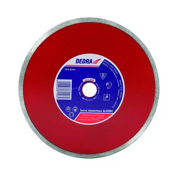 Tarcza diamentowa przygotowana przez firmę Dedra, z myślą o cięciu twardej ceramiki, gresu i granitu. Wyposażona została w wieniec ciągły, który odpowiada za doskonałą jakość ciętego materiału. Tarcza nadaje się zarówno do cięcia na sucho jak i na mokro.
