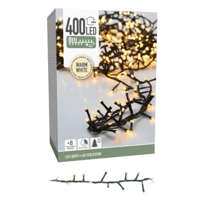 Oświetlenie świąteczne do stosowania na zewnątrz i wewnątrz, które przygotowano z wykorzystaniem 400 mikro LED, osadzonych na czarnym przewodzie. Lampki świecą ciepłym białym światłem. Stanowią bardzo atrakcyjną dekorację, która nadaje ogromnej magii w czasie świąt Bożego Narodzenia.