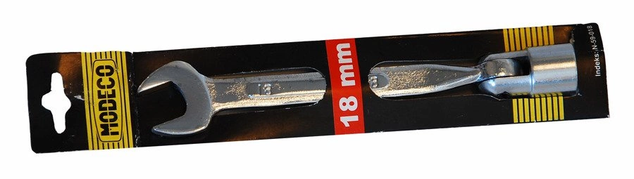 Klucz płasko-nasadowy 18 mm MODECO idealnie nadaje się do prac montażowych, serwisowych oraz naprawczych w motoryzacji, budownictwie, instalacjach sanitarnych czy podczas majsterkowania. Doskonały do dokręcania i luzowania śrub oraz nakrętek o średnicy 18 mm.