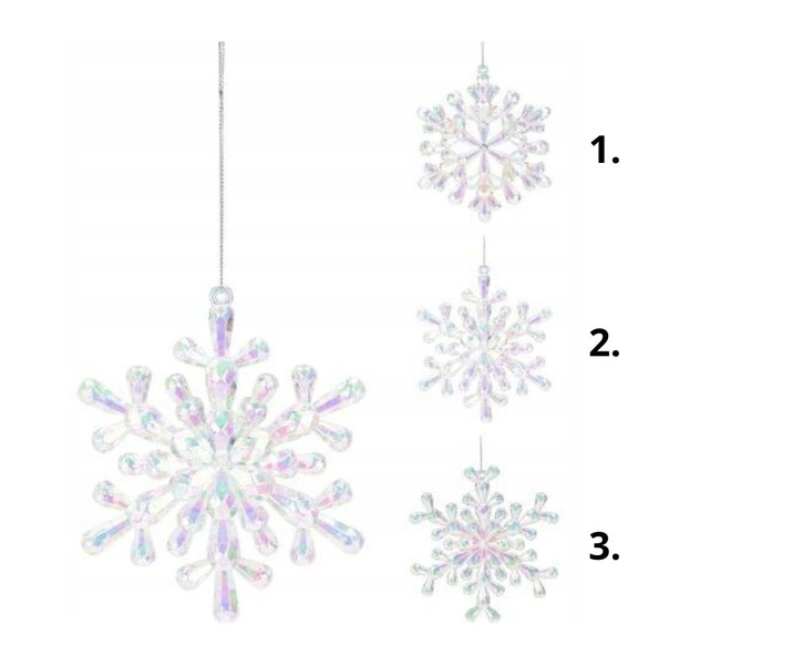- Zawieszka akryl śnieżynka 12cm opal transparentna 3 wzory