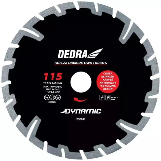 Tarcza diamentowa Dynamic Turbo S 115x22,2mm Dedra doskonale sprawdzi się podczas prac remontowych i budowlanych, takich jak cięcie glazury, kafli, betonu, cegły, klinkieru oraz różnego rodzaju kamieni. Idealna dla profesjonalistów oraz osób samodzielnie wykonujących prace wykończeniowe w domu.