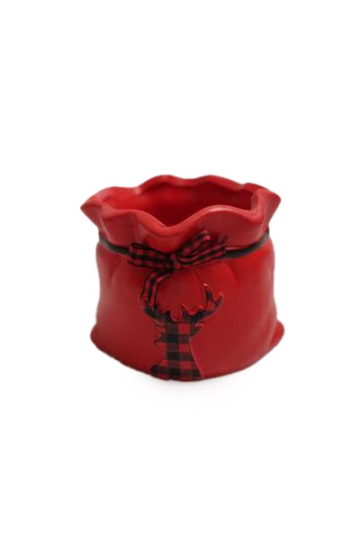 Bardzo ładna i stylowa osłonka, przygotowana z ceramiki w kolorze czerwonym w kształcie worka na prezenty z kokardą w kratę i reniferem. Jest charakterystycznym elementem dekoracyjnym, którego magia rozbrzmiewa zwłaszcza w okresie Bożego Narodzenia.