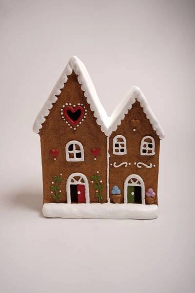 Bardzo atrakcyjny wizualnie domek, który przygotowano w formie konstrukcji wykonanej z ceramiki stylizowanej na piernikową. Dodatkowo, umieszczono w nim LED-owe oświetlenie. Jest to dekoracja, którą przygotowano z myślą o okresie świąt Bożego Narodzenia. Wnosi do wnętrza magię, klimat i nastrój tego okresu.