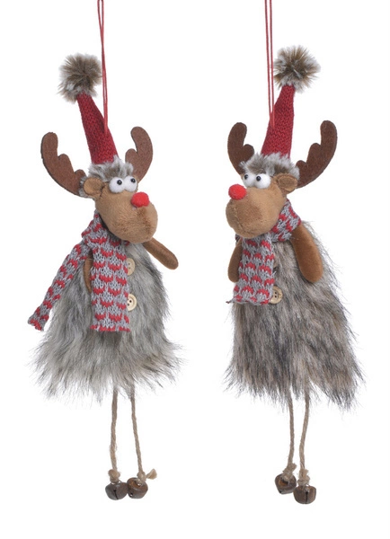 Zawieszka choinkowa przygotowana w kształcie renifera, który odziany został w futerkową sukienkę i czerwoną czapkę. Jest bardzo ciekawą alternatywą dla klasycznych dekoracji, dbając o to by przyciągać spojrzenia. Wykonana starannie, podkreśla i buduje magię świąt Bożego Narodzenia, a także dba o uśmiech najmłodszych mieszkańców domu.
