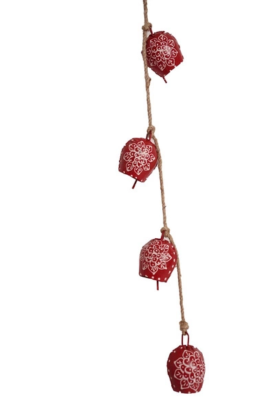 - Girlanda składa się z czterech metalowych dzwonków w intensywnym, czerwonym kolorze.