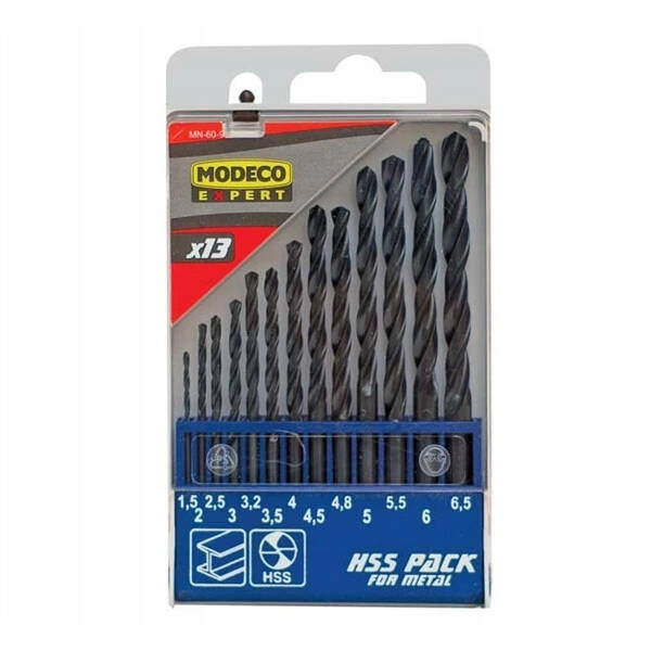 Zestaw wierteł HSS-R do metalu 13 wierteł 1,5-6,5mm Modeco
