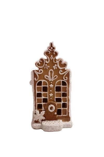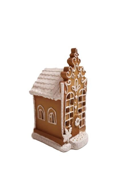 Bardzo atrakcyjny wizualnie domek, który przygotowano w formie konstrukcji wykonanej z ceramiki stylizowanej na piernikową z długimi oknami. Dodatkowo, umieszczono w nim LED-owe oświetlenie. Jest to dekoracja, którą przygotowano z myślą o okresie świąt Bożego Narodzenia. Wnosi do wnętrza magię, klimat i nastrój tego okresu.