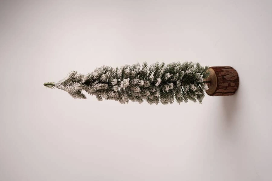 Choinka wąska chuda zielona białe końce na pniu 40cm