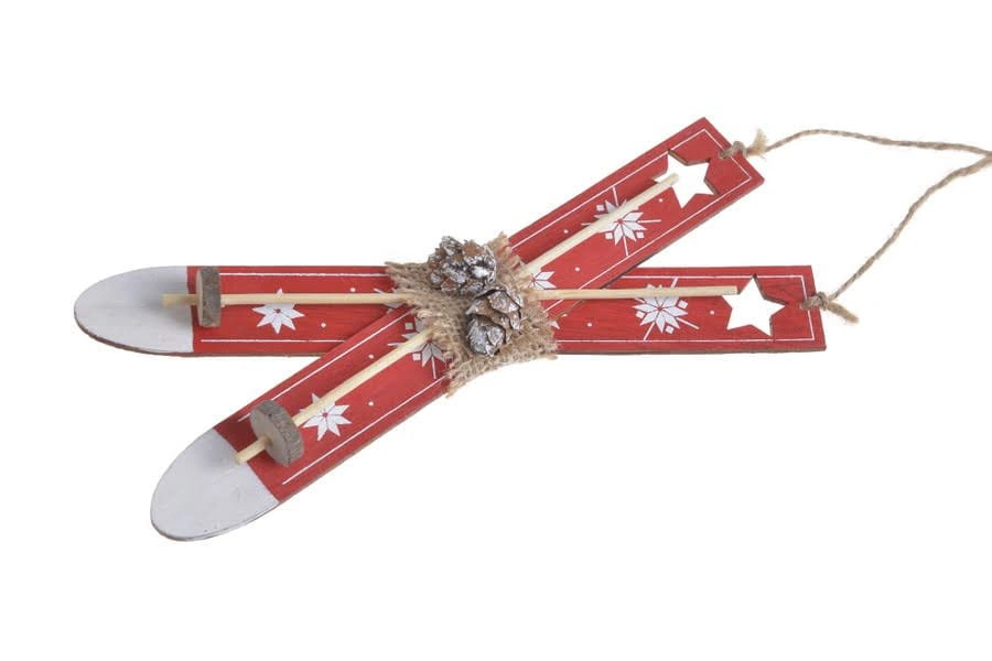 - Zawieszka drewniane czerwone narty z gwiazdkami 2 sztuki