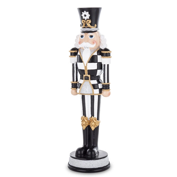 Figurka przedstawiająca dziadka do orzechów. Utrzymana w czarno-białej kolorystyce ze złotymi dodatkami. To ozdoba rozsławiona przez słynną powieść dla dzieci, która na trwałe wpisała swoją obecność w czas Bożego Narodzenia.