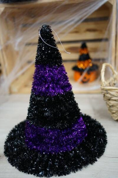 Dekoracyjny kapelusz Halloweenowy, który równie dobrze sprawdzi się jako dekoracja wnętrza, jak i element przebrania.