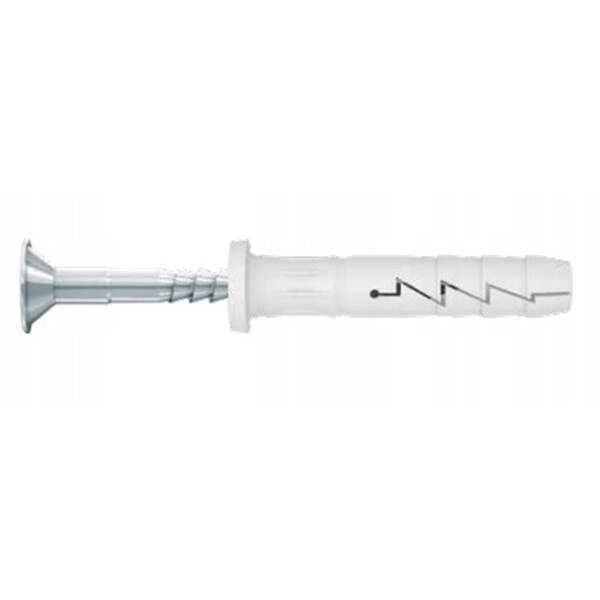 Kołek wbijany szybkiego montażu 6x60mm doskonale sprawdza się przy mocowaniu instalacji elektrycznych, ram, profili, listew, systemów gipsowo-kartonowych, cokołów, profili wykończeniowych oraz instalacji sanitarnych i gazowych. Przeznaczony do montażu w betonie, gazobetonie, cegle pełnej, bloczkach z betonu lekkiego, cegle silikatowej pełnej i drążonej oraz pustakach z betonu lekkiego.