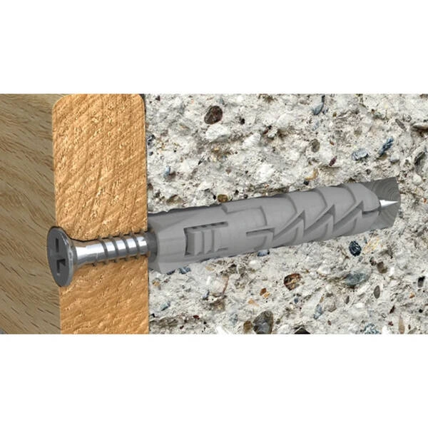Kołek rozporowy 8x40mm z wkrętem 4,5x60mm to praktyczny zestaw montażowy, który zapewnia trwałe i bezpieczne mocowanie w betonie, cegle oraz innych podłożach pełnych. Dzięki innowacyjnej konstrukcji z dwukierunkowym mechanizmem rozporu, kołek gwarantuje solidne zamocowanie nawet przy dużych obciążeniach. Skrzydełka antyrotacyjne oraz specjalne wypustki stabilizujące eliminują ryzyko obracania się podczas montażu, co przekłada się na wygodę i szybkość pracy. Kompletny zestaw 6 sztuk pozwala na natychmiastowe przystąpienie do montażu akcesoriów łazienkowych, szafek, uchwytów czy instalacji elektrycznych.
