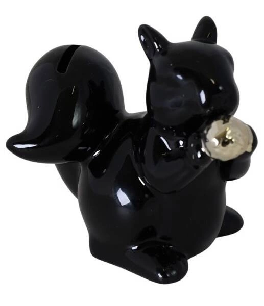 Ceramiczna skarbonka wiewiórka czarna ze złotą szyszką 12 cm