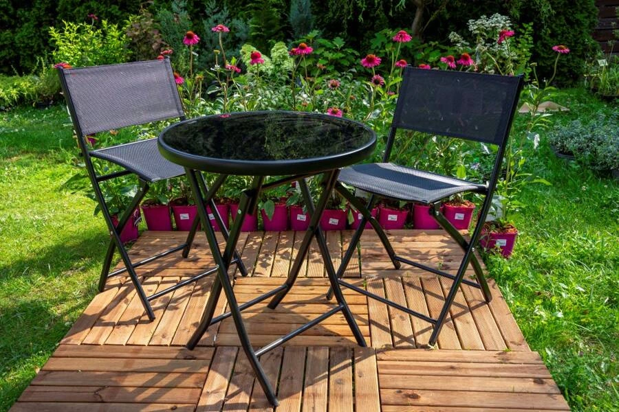 Zestaw mebli stolik + 2krzesła składane antracyt idealnie nadaje się do wykorzystania na balkonach, tarasach oraz w ogrodach. Świetnie sprawdzi się podczas codziennego wypoczynku, porannej kawy czy spotkań z bliskimi na świeżym powietrzu.
