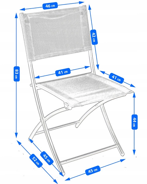 - Składane krzesła i stół – oszczędność miejsca i wygodne przechowywanie.