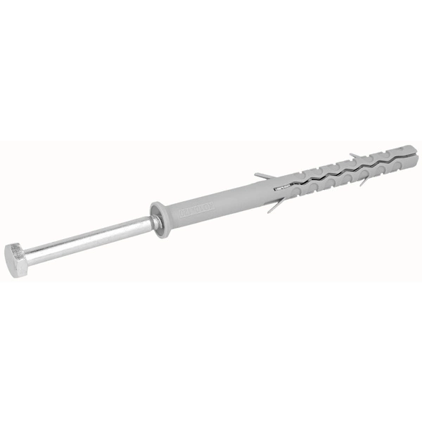 Kołek ramowy KD z łbem heksagonalnym 10x80mm w opakowaniu 6 sztuk to niezawodne rozwiązanie do mocowania w szerokim zakresie podłoży, takich jak cegła otworowa, gazobeton czy cegła pełna. Specjalna, zygzakowata konstrukcja kołka z dodatkowymi skrzydełkami antyrotacyjnymi zapewnia stabilność oraz pewność montażu, nawet w wymagających warunkach. Wysokiej jakości nylon PA6 gwarantuje odporność na uszkodzenia i długą żywotność produktu. Kołek z łbem heksagonalnym umożliwia szybki i bezpieczny montaż balustrad, szafek, wsporników, uchwytów, a także drzwi i okien. Rozwiązanie to pozwala na wiercenie bezpośrednio przez mocowany element, bez konieczności wcześniejszego znakowania.