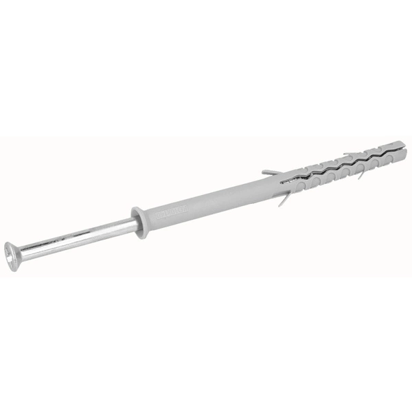 Kołek ramowy KDS z łbem stożkowym 10x100mm to niezawodne rozwiązanie do trwałego mocowania w różnych podłożach. Dzięki specjalnej konstrukcji ze skrzydełkami antyrotacyjnymi oraz zygzakowatemu kształtowi, zapewnia wyjątkową stabilność i większy rozpór w materiale. Wysokiej jakości nylon PA6 gwarantuje odporność na odkształcenia podczas dokręcania, co przekłada się na długą żywotność produktu. Montaż kołka nie wymaga znakowania – wiercenie odbywa się bezpośrednio przez mocowany element, co znacznie przyspiesza i ułatwia pracę. Idealny do mocowania drzwi, okien oraz innych elementów w cegle, gazobetonie czy cegle pełnej.