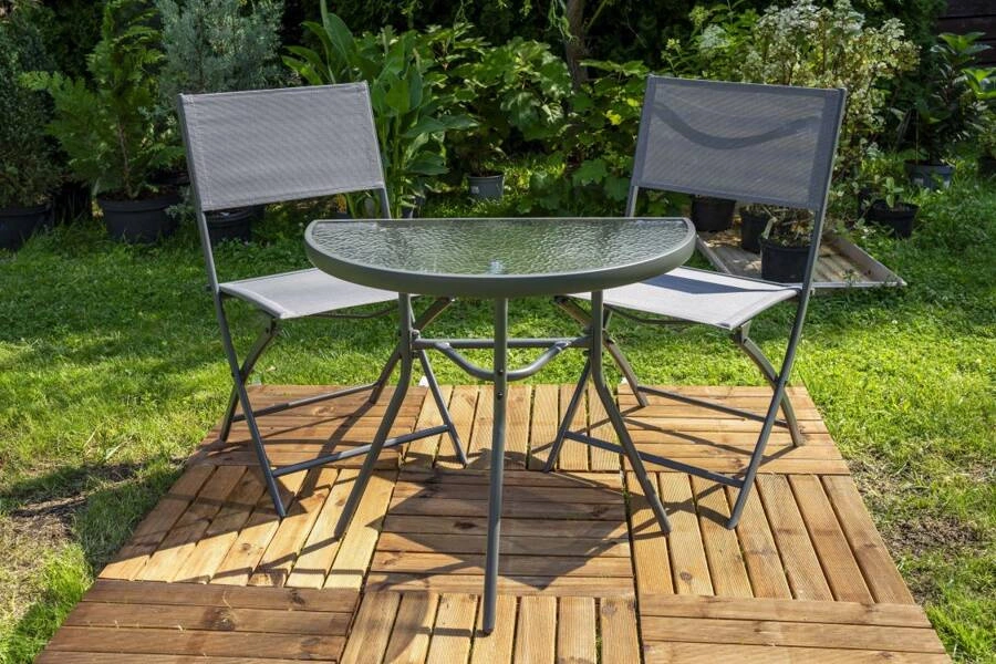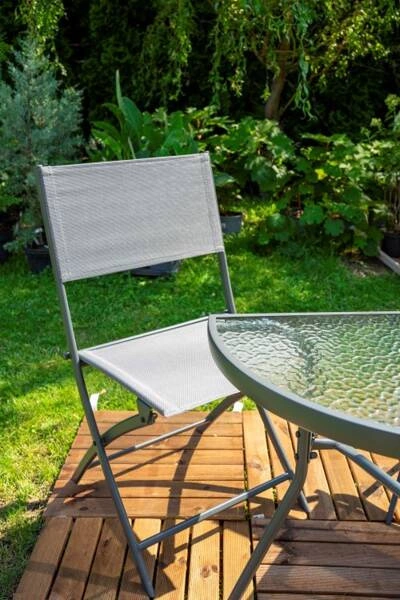 Zestaw mebli stolik półokrągły+2krzesła składane doskonale nadaje się do aranżacji balkonów, tarasów, ogrodów oraz altan. Sprawdzi się podczas codziennego relaksu, spotkań przy kawie, a także rodzinnych posiłków na świeżym powietrzu.